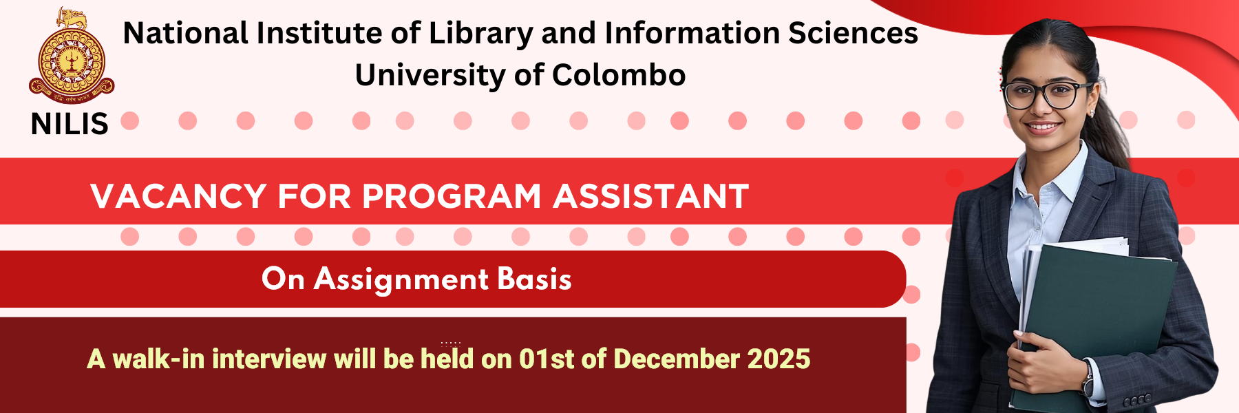 Featured Courses Explore new courses offered by NILIS, University of Colombo. All Courses Advanced Certificate in Librarianship (ACL) Diploma in Public Librarianship (DPL) Diploma in Library and Information Management (DLIM) Diploma in School Librarianship (DSL) Postgraduate Diploma in Library and Information Science (PGLIS) Higher Diploma in Library and Information Management (HDLIM) Master of Library and Information Science (MLIS) Masters in Teacher Librarianship Master of Philosophy / Doctor of Philosophy (MPhil/PhD) Postgraduate Diploma in Information Management (PGDIM) Master in Information Management (MIM) Current News Current news, notices on events and special announcements News Nov 27 Exam postponed until further notice By Ruwan Gamage Nov 22 NILIS Research Symposium 2025 Held Successfully By Ruwan Gamage Nov 20 Post of Program Assistant (Assignment basis) By Nirmal Jayathilaka Nov 15 Walk-in Interview for Master of Library and Information Science (MLIS) By Ruwan Gamage News Archive News Archive The News Archive houses past announcements, events, and updates from NILIS, preserving important milestones and information for reference. Oct 30 Oct 17 Jun 08 Calling Applications for following programmes