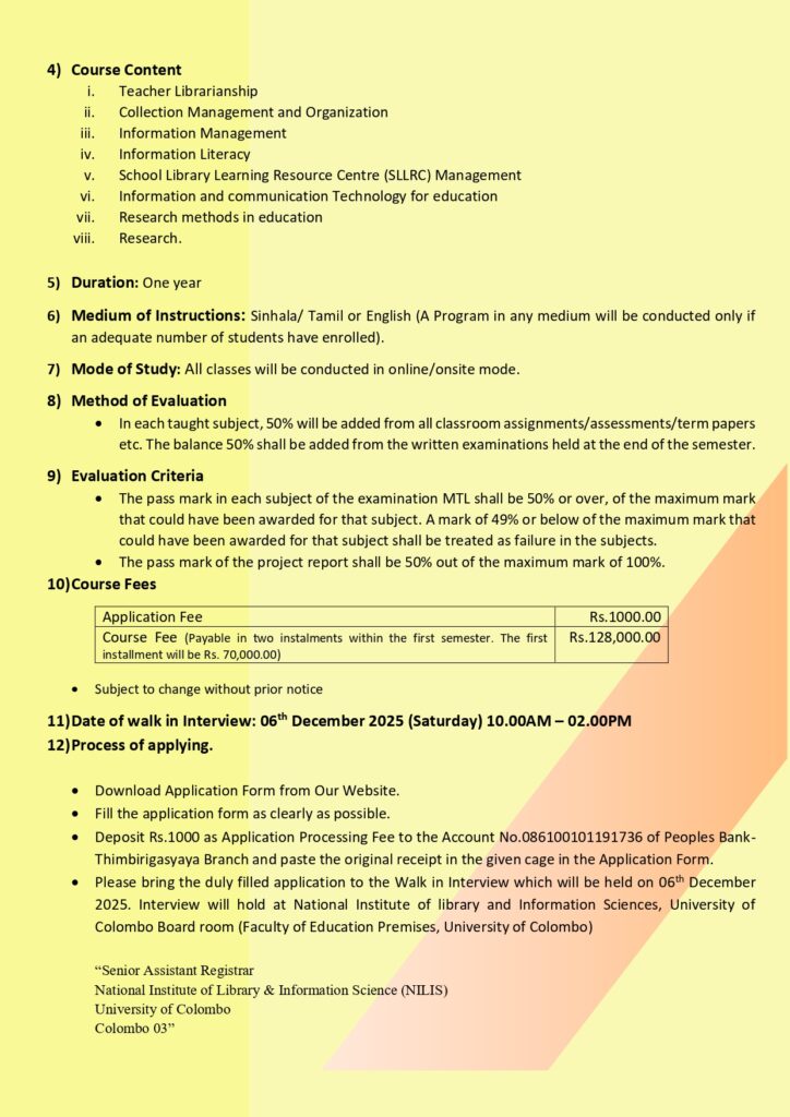 Categories Master Programs Download Application Form Download Course Flyer Express of your interest of joining the walk in interview by providing details here Related Course Master in Information Management (MIM) Master of Library and Information Science (MLIS)