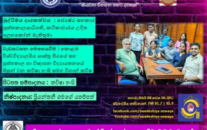 Director – NILIS appeared on Swadeshiya Sewaya of Sri Lanka Broadcasting Corporation in it’s Vidyawa ha Darshanaya (Science and Philosophy) program. “Sarasawi Reswalalla” Program Reading Inquiry — Science and Philosophy : Lecturer Prof.Ruwan Gamage